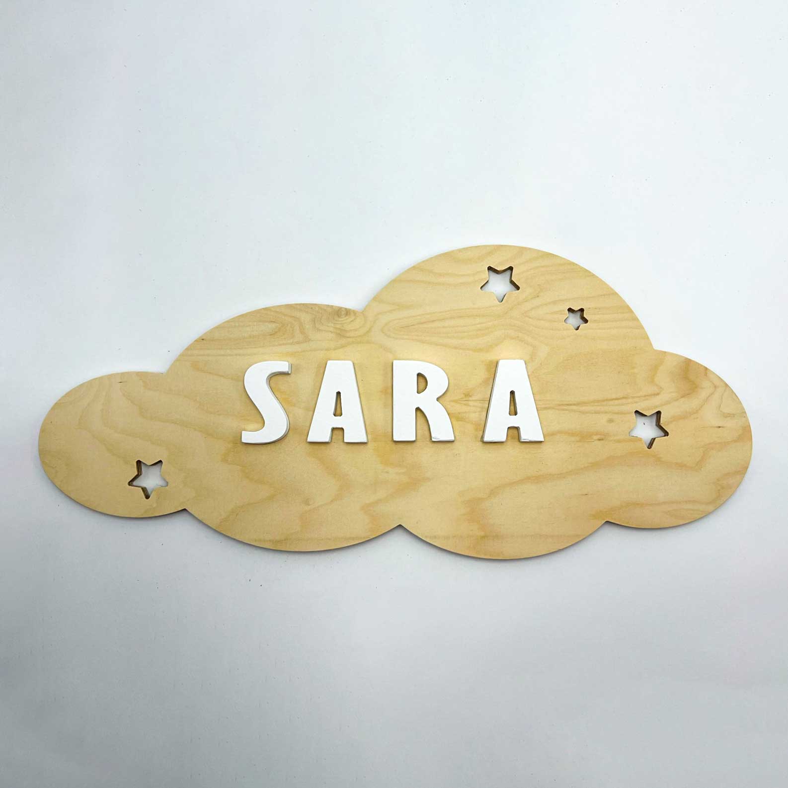 La nube de madera personalizada con un nombre es perfecta para decorar la habitación de los niños y agregar un toque personal. Con un ancho de 60 cm, esta nube es grande y llamativa, y se verá espectacular pegada en la pared. El proceso de personalización es simple y rápido, solo necesita proporcionar el nombre que desea que aparezca en la nube.
